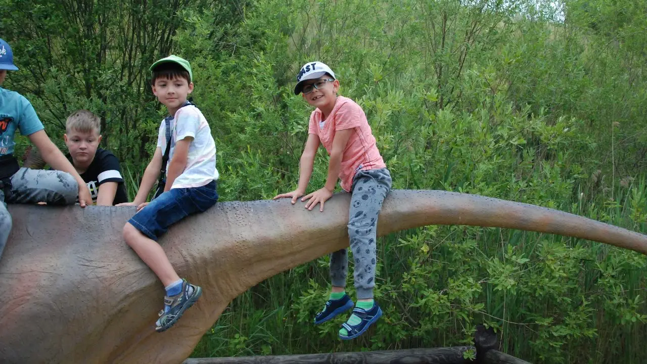 Krasiejów - Klub Urwisa DinoCamp(wiek 7-11 lat)- mieszkamy na terenie JuraParku Dla naszych troskliwych i kreatywnych wychowawców JuraPark Krasiejów to doskonała baza pozwalająca tak zaplanować zajęcia, aby w każdym dniu działo się coś nowego, ciekawego, żeby nikt nie miał czasu na nudę. Będzie dzień spotkania z Paleomaniakiem, który poprowadzi pełne śmiechu i przygód animacje. Na zakończenie zajęć uczestnicy będą szukać prawdziwych skamieniałości, stając się odkrywcami pradawnego świata. Dzień podróży w czasie – wykorzystując interaktywne i multimedialne możliwości JuraParku, zanurzając się w pradawny świat, milusińscy udadzą się w podróż do początków życia na Ziemi. W Labiryncie Przodków czekać będzie na wszystkich świat pełen zagadek i tajemnic z przeszłości. Noc dinozaurów - po zamknięciu JuraParku, pod osłoną nocy krasiejowskie dinozaury ożywają, a dzieci będą miały okazję się o tym przekonać! (konieczna latarka). Do tego bogaty program rekreacyjny, gry i zabawy, zajęcia sportowe, gry terenowe, kąpiele i Piana Party na plaży. Program jest tak bogaty, że cały turnus będzie wypełniony atrakcjami, a każde dziecko zabierze do domu własnoręcznie zrobioną pamiątkę. Wakacje w Krasiejowie - to prawdziwe stąpanie po śladach prehistorycznych gadów - one tu żyły naprawdę! Dajcie się zaprosić na ten niecodzienny „spacer’! Zakwaterowanie 5 noclegów w części hotelowej Parku Nauki i Ewolucji Człowieka. Pokoje 4-, 6-osobowe z łazienkami, łóżka piętrowe. Zakwaterowanie: 5 noclegów. Przyjazd nie wcześniej niż o godz. 17.00, wyjazd nie później niż o godz. 16.00. Cena nie zawiera